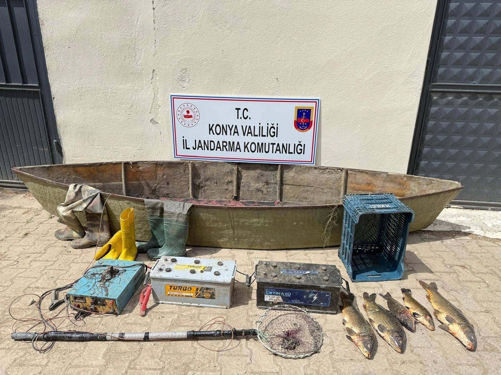 Konya’nın Beyşehir ilçesinde elektroşokla kaçak balık avı yapan iki kişiye toplam 1 milyon 416 bin lira para cezası kesildi. Olayda kullanılan kayık ve ekipmanlar ile 20 kilo sazan balığına da el konuldu.
