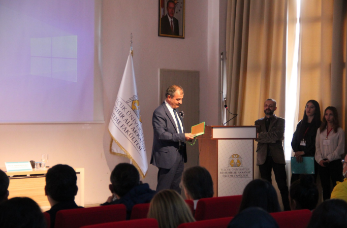 Yoğun ilgi gören söyleşinin ardından Prof. Dr. Fehmi Karasioğlu’na Beyşehir Ali Akkanat Turizm Fakültesi dekanı Prof. Dr Abdullah Karaman, Beyşehir Ali Akkanat İşletme Fakültesi dekanı Prof. Dr. Fatih Mangır, Beyşehir Ali Akkanat Uygulamalı Bilimler Yüksekokulu müdürü Prof. Dr Savaş Çelik ve Beyşehir Ali Akkanat Meslek Yüksekokulu Müdürü Doç. Dr. Ali Antepli tarafından teşekkür belgesi takdim edildi.