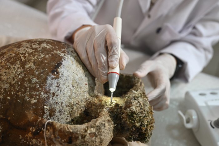Uzmanlar, amfora içindeki malzemeden numuneler alarak, çıkarılanların ne olduğunun belirlenmesi için analiz çalışmasına başladı.