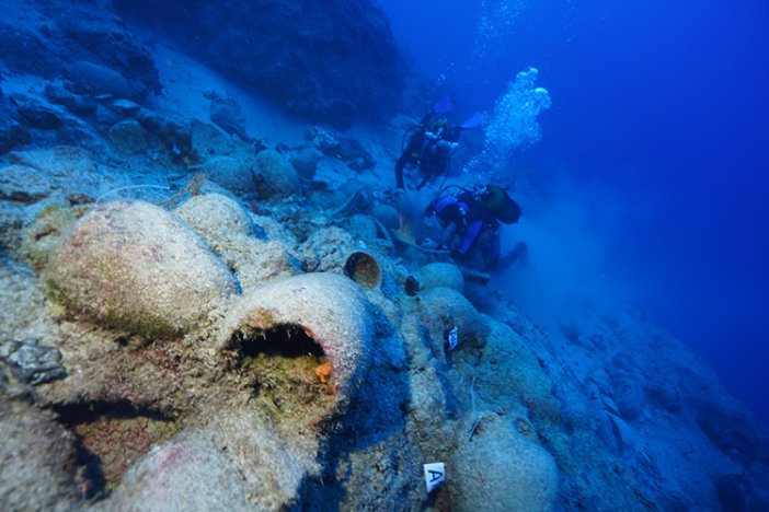 Akdeniz Üniversitesi Güzel Sanatlar Fakültesi Kültür Varlıklarını Koruma ve Onarım Bölümü Başkanı ve kazının bilimsel danışmanı Doç. Dr. Hakan Öniz ve 20 kişilik dalış ekibi, Akdeniz açıklarında su altı kazısı yapıyor.