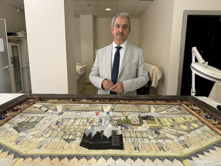 Türkiye'nin en zengin tablo koleksiyonuna sahip Milli Saraylar Başkanlığı'na bağlı konservasyon ve restorasyon atölyelerinde, Mescid-i Haram'ı ayrıntılarıyla resmeden 200 yıllık nadide bir tablo üzerinde çalışılıyor.