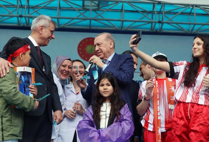 Fizik tedavi gören bir genç kızın sağlık durumuna ilişkin doktorlardan bilgi alan Erdoğan, kıza, "Çok başarılı. Yakında inşallah voleybola da başlar. Bak nasıl gülüyor. Ama baskete başlarsan benimle oynayacaksın." dedi.