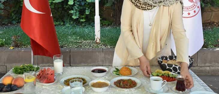 Bakanlık tarafından Hekimevi'nde düzenlenen etkinlikte, "sağlıklı bayram sofrası" hazırlandı. Sofrada söğüş salatalık, domates, ceviz, peynir, zeytin gibi kahvaltılıkların yanı sıra mercimek çorbası, sebzeli et yemeği, zeytinyağlı taze fasulye, içecek olarak süt ve soda, tatlı olarak sütlaç yer aldı.