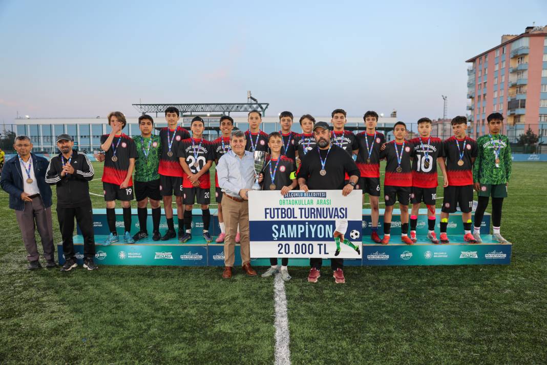 Selçuklu Belediyesi ve Selçuklu İlçe Milli Eğitim Müdürlüğü iş birliğiyle düzenlenen Ortaokullar Arası Futbol Turnuvası, final müsabakasının ardından büyük bir coşkuyla sona erdi.