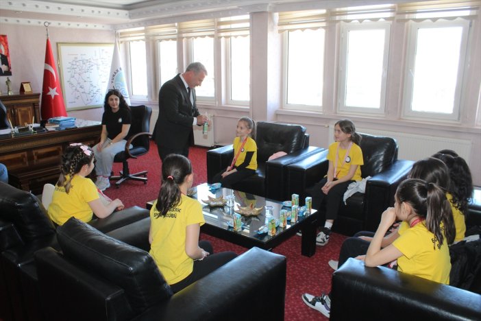 Yunak Belediye Başkanı Subhan Günaltay, Konya'da düzenlenen ritmik cimnastik yarışmasında dereceye giren başarılı öğrencileri makamında ağırladı.