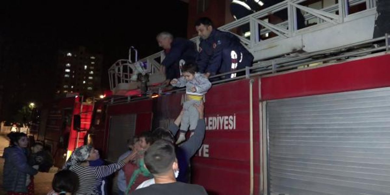 İTFAİYE EKİPLERİ 3'Ü ÇOCUK 10 KİŞİYİ MERDİVENLE İNDİRDİ