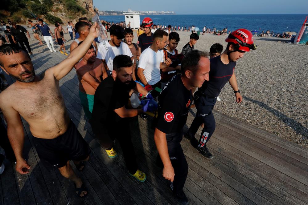 Vatandaşlar tarafından bilinci kapalı bir şekilde güçlükle sahile çıkartılan gence olay yerine gelen itfaiye ve sağlık ekipleri tarafından ilk müdahale yapıldı. Kalbi duran ve su yutan genç ekiplerin uzun uğraşları sonucunda yeniden hayata döndürülerek ağır yaralı olarak ambulansla Antalya Eğitim ve Araştırma Hastanesi'ne kaldırıldı. Gencin durumunun ciddiyetini koruduğu bildirildi