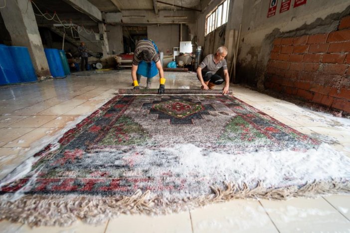 Halılara eskitme işlemi uygulayan Ali Sarı, yapılan işlemler hakkında bilgi verdi. Sarı;