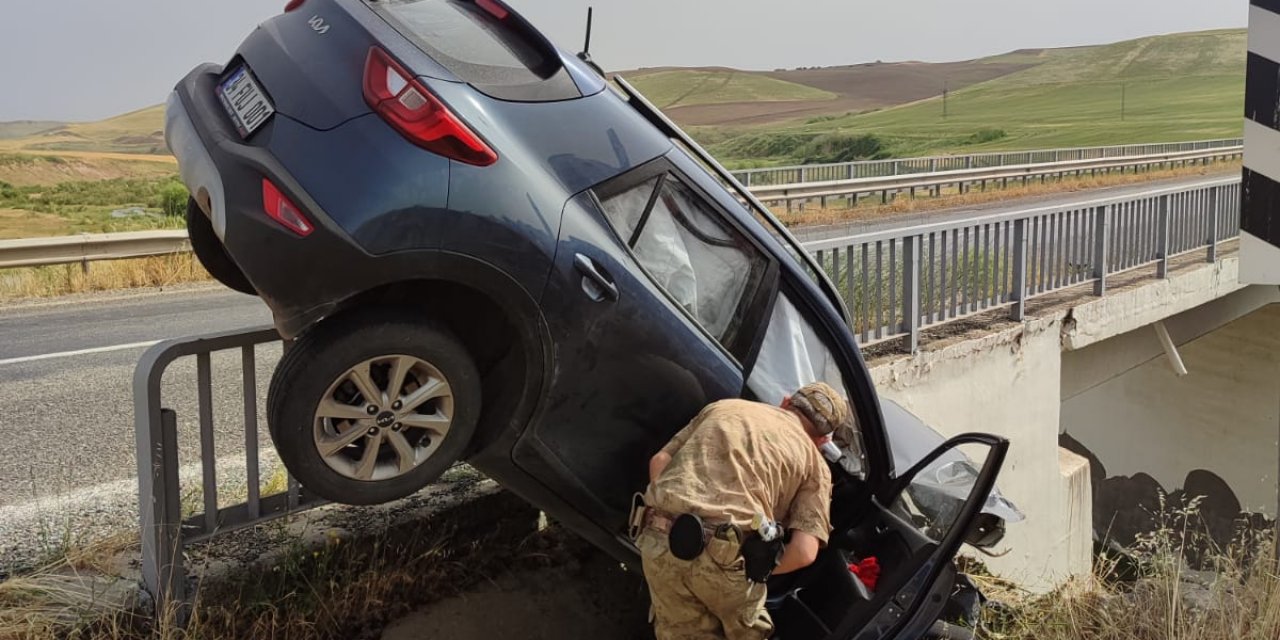 Savrulan Çardak’ın otomobili, köprü girişindeki bariyerleri aşarak duvara çarpıp, durdu. İhbar üzerine kaza yerine sağlık, itfaiye ve jandarma ekipleri sevk edildi.