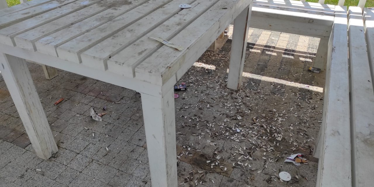 Zabıtanın gözetiminde 4 kişi, kabuklar temizledi, daha sonra parktan ayrıldı. O anlar parkın güvenlik kamerasına yansıdı.