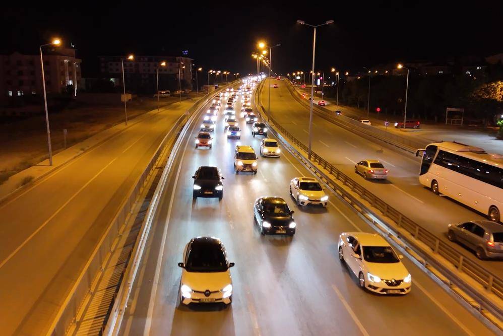 Kurban Bayramı tatilinin başlamasıyla birlikte 43 ilin geçiş güzergahı olan Kırıkkale'de trafik yoğunluğu oluştu. Özellikle gece saatlerinde artan araç trafiği havadan görüntülendi. Jandarma ve polis ekipleri denetimlerini sıklaştırdı.