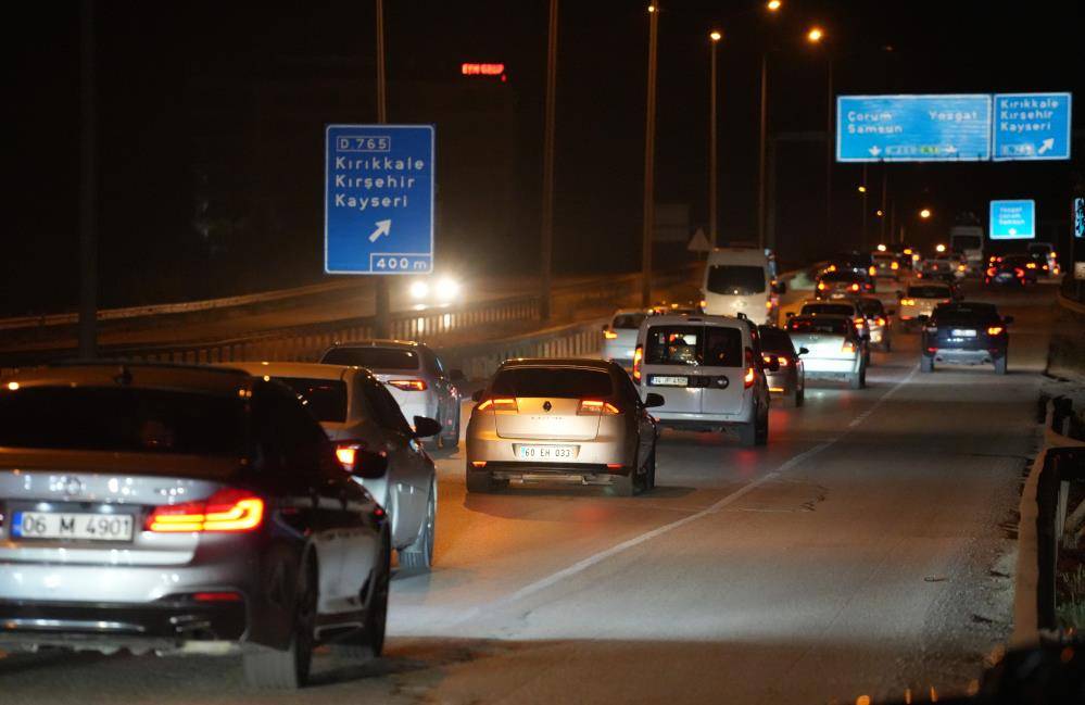 Kırıkkale-Ankara D200 Karayolu’nda gece saatlerinden itibaren araç yoğunluğu gözlemlendi. Havadan çekilen görüntülerde, uzun araç kuyrukları dikkat çekerken, trafiğin zaman zaman durma noktasına geldiği görüldü. Kırıkkale-Kayseri D765 Karayolu’nda ise trafiğin daha akıcı olduğu bildirildi.