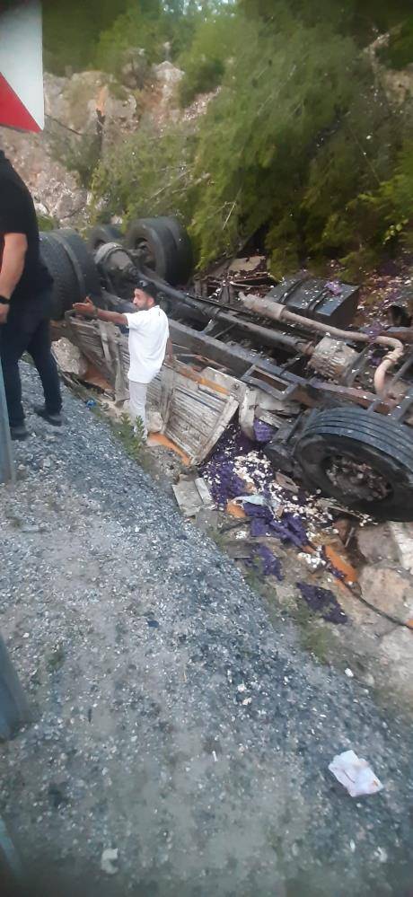 Akseki-Manavgat karayolu üzerindeki Manayıt mevkiinde, Osman Öztürk (60) idaresindeki 07 LEG 98 plakalı yumurta yüklü kamyon kontrolden çıkarak devrildi.