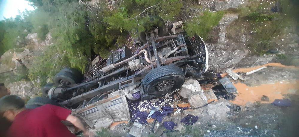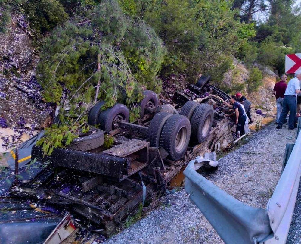 Saat 20.00 sıralarında meydana gelen kazada, kamyon virajı alamayarak yol kenarındaki kayalık ve taşlık alana savruldu ve ters döndü.