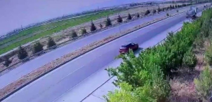 Kaza, bölgedeki yediemin deposunun güvenlik kamerasına yansıdı. Görüntülerde süt tankerinin kontrollü şekilde emniyet şeridine girdiği ve birkaç saniye sonra otomobilin hızla gelip tankere çarptığı görülüyor.