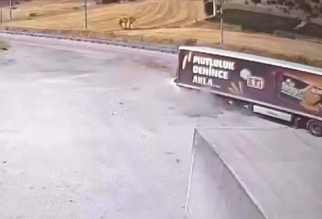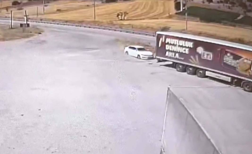 Feci kaza, yol kenarındaki bir lokantanın güvenlik kamerasına da saniye saniye yansıdı. Görüntülerde otomobilin hızla TIR’a çarpması ve ardından yaşanan panik anları dikkat çekti.