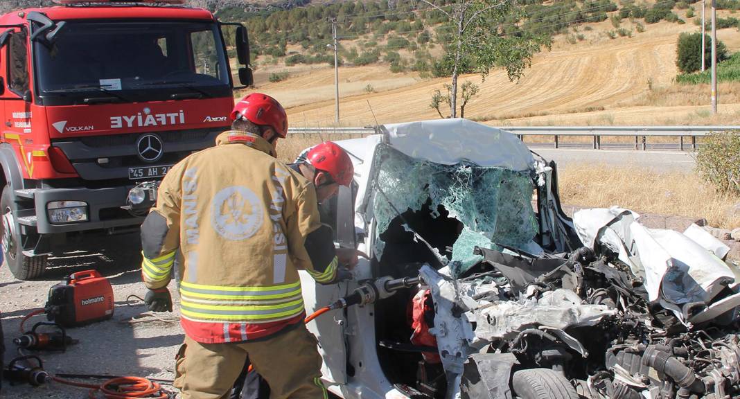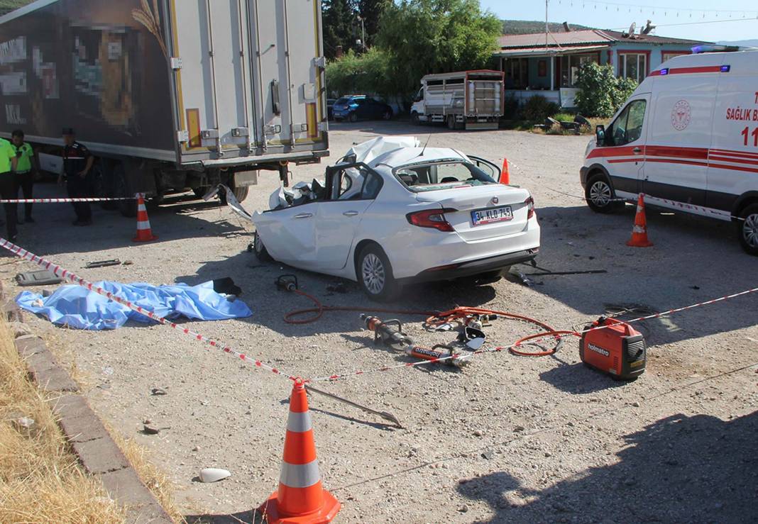 TIR'ın dorsesinin altına sıkışan otomobildeki 4 kişi, Manisa Büyükşehir Belediyesi İtfaiye ekiplerinin yoğun çalışmasıyla araçtan çıkarıldı. Ancak ekipler, baba ve 3 çocuğun olay yerinde yaşamını yitirdiğini belirledi.