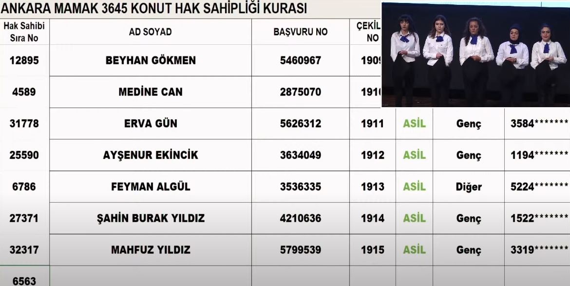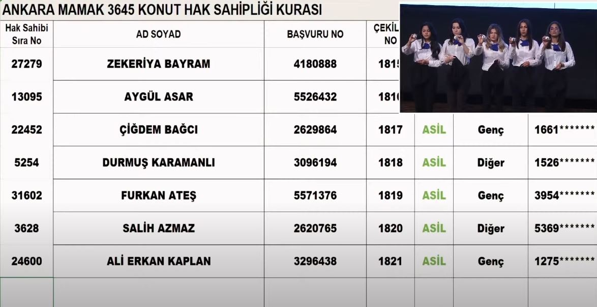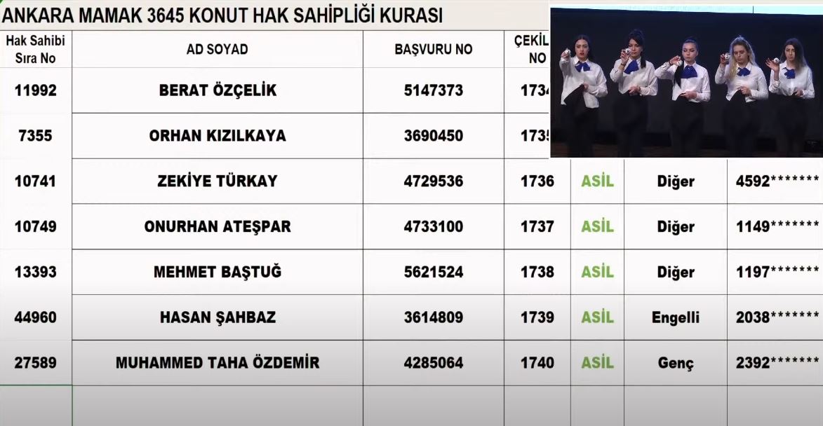 İşte Mamak TOKİ kura sonuçları diğer kategorisinde belirlenen isimlerden bazıları: