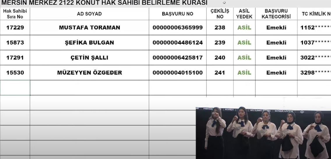 İşte, TOKİ Mersin kura çekilişi sonucu şehit ailesi, engelli ve emekli kategorisinde belirlenen ilk isimler: