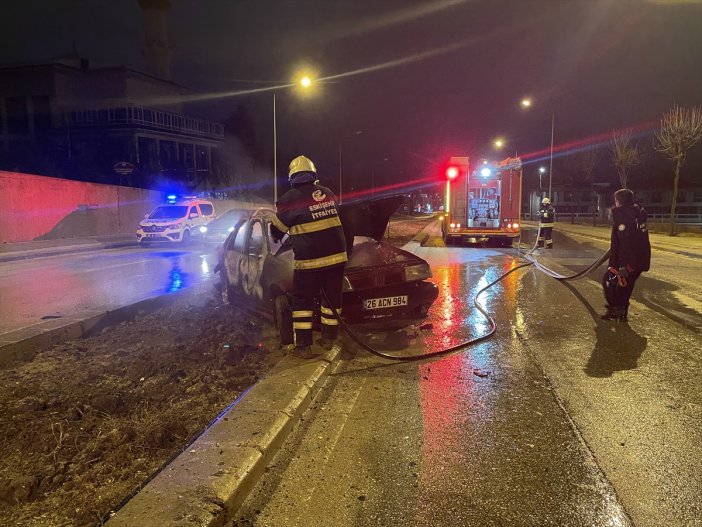 Çankaya Mahallesi Özlem Caddesi'nde Fatih Y. idaresindeki 26 ACN 984 plakalı otomobil, henüz belirlenemeyen bir nedenle alev aldı.