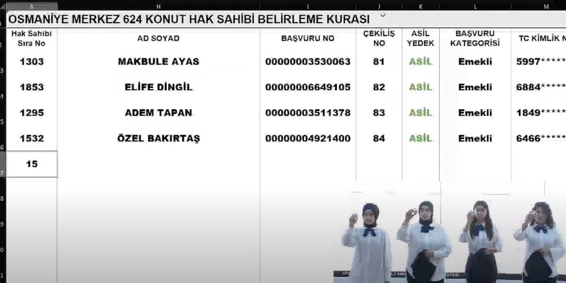 Osmaniye İl Milli Eğitim Müdürlüğü Kültür ve Sanat Kongre Merkezinde yapılan Osmaniye merkez ile Kadirli, Bahçe, Düziçi, Topakkale, Düziçi Ellek ve Sumbas TOKİ kura çekiliş sonuçları ve isim listesi çekilişini canlı olarak izleyebilirsiniz.