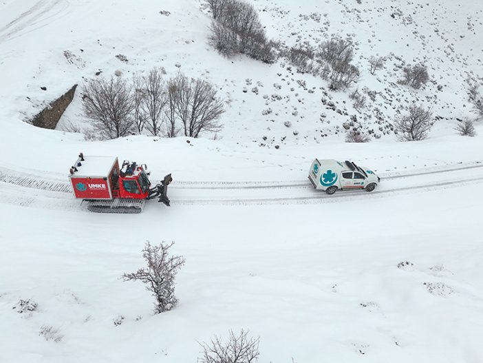 Çetin kış koşullarının etkili olduğu kentte kırsaldan 112 Acil Çağrı Merkezine gelen ihbarları değerlendiren UMKE, hastaların sağlık merkezlerine ulaşması için hızla harekete geçiyor.