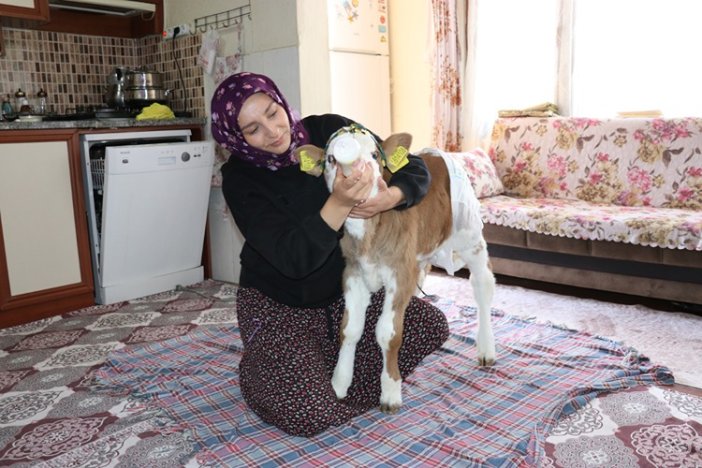 61 yaşındaki Zeynep Aksoy ise "Nisan"ı evin bir ferdi gibi görmeye başladıklarını belirterek, "Normalde iki kişiyiz anneli, kızlı yaşıyoruz ama şimdi Nisan ailemizin üçüncü üyesi oldu. O da yavrumuz, danamızla çok ilgileniyoruz, onu çok seviyoruz. Emziriyoruz, yediriyoruz, içiriyoruz. Yatağımıza alıp, yatırıyoruz, bezliyoruz." diye konuştu.
