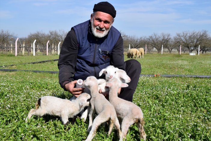Turgutlu Ovası'nda çiftliği bulunan ve 3 yıldır koyun besiciliği yapan 52 yaşındaki İslam Akgül'ün, sürüsünde bulunan merinos cinsi koyun, bir hafta önce doğum yaptı.