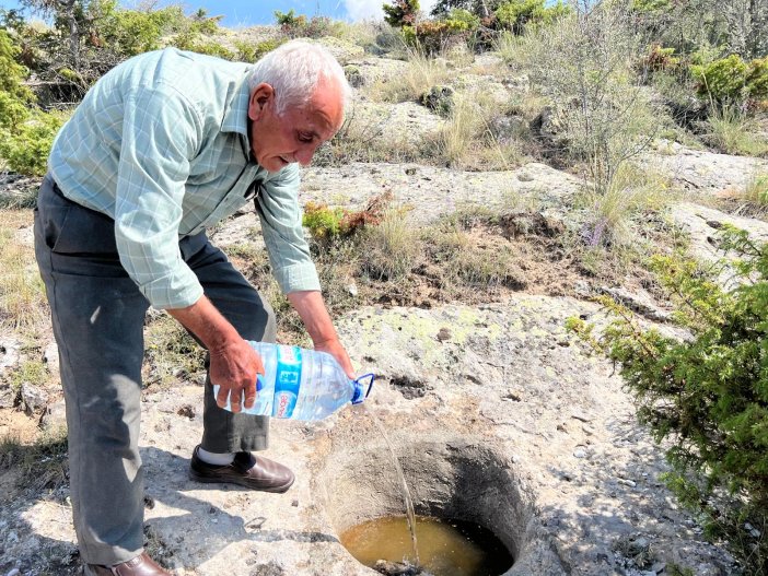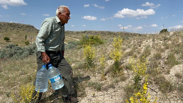 Nevşehir'de midesinden ameliyat olduktan sonra yaşadığı su ihtiyacından etkilenerek kırsal alanlarda yabani hayvanlar için su yalağı yaptıran Mevlüt Şen, Azrail gelip “1 saatin kaldı” dese bile o sürede hayvanlara su taşıyacağını söylüyor.