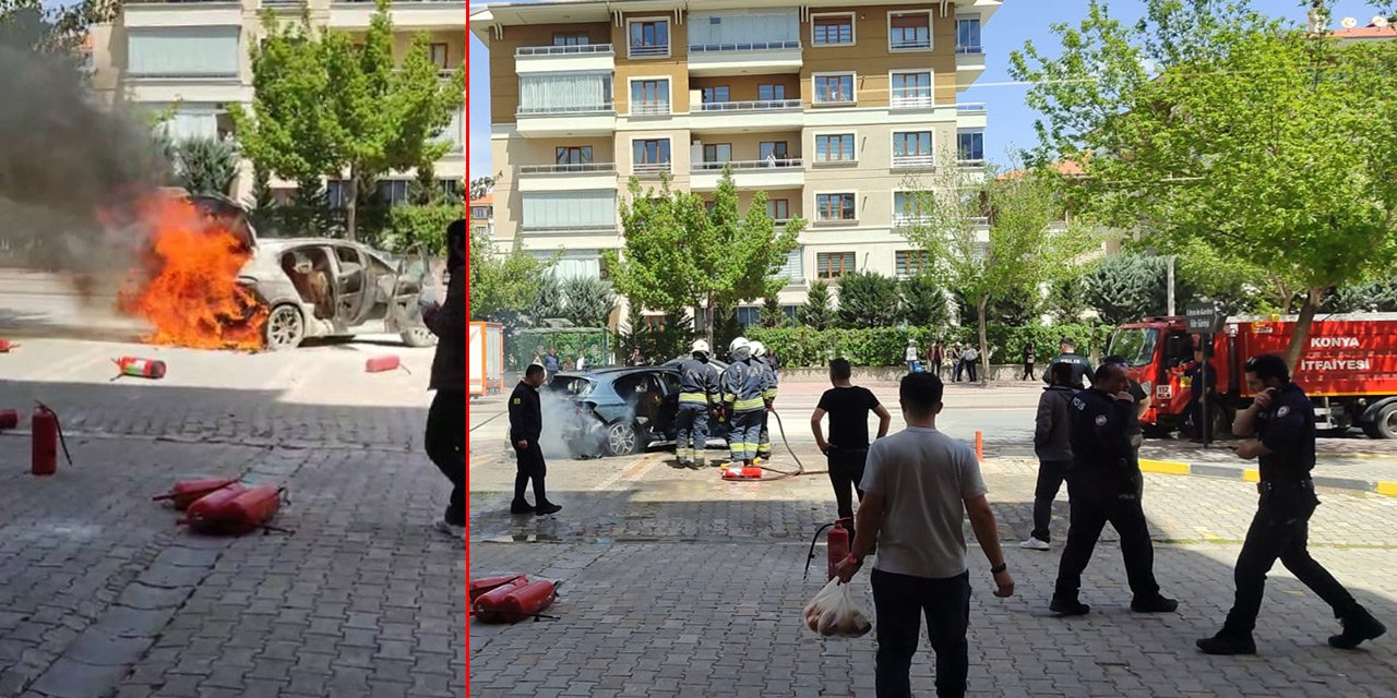 Konya’da park halindeki otomobilde yangın çıktı